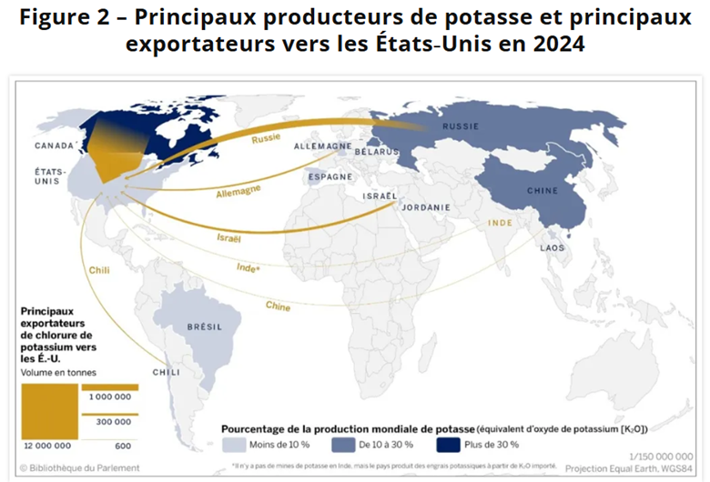 Ajoutons les menaces américaines de mettre des tarifs sur la potasse canadienne. Les Etats-Unis importent plusieurs millions de tonnes… Un producteur de grandes cultures peut-il se permettre cela? Cette idée de tarif est politique bien évidemment. Le Président Trump trouve tout ce qu’il peut pour mettre à genoux le Canada. En même temps, il négocie avec la Biélorussie pour obtenir certaines choses (potasse Biélorusse?) ou pour amadouer Poutine, ou pour circonscrire l’influence de Poutine. (Les Etats-Unis font la même chose en arraisonnant les pétroliers vénézuéliens qui appartiendraient en partie à la Russie utilisant des sociétés écrans pour faire transiter ce pétrole sous sanction). Pour acheter de la potasse de ce coin du monde il faut faire augmenter les prix provenant du Canada pour rendre les choses concurrentielles. Et quoi de mieux que des tarifs….