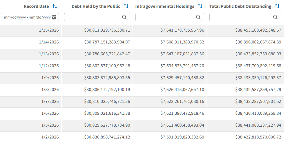 Annexe1. https://fiscaldata.treasury.gov/datasets/debt-to-the-penny/debt-to-the-penny