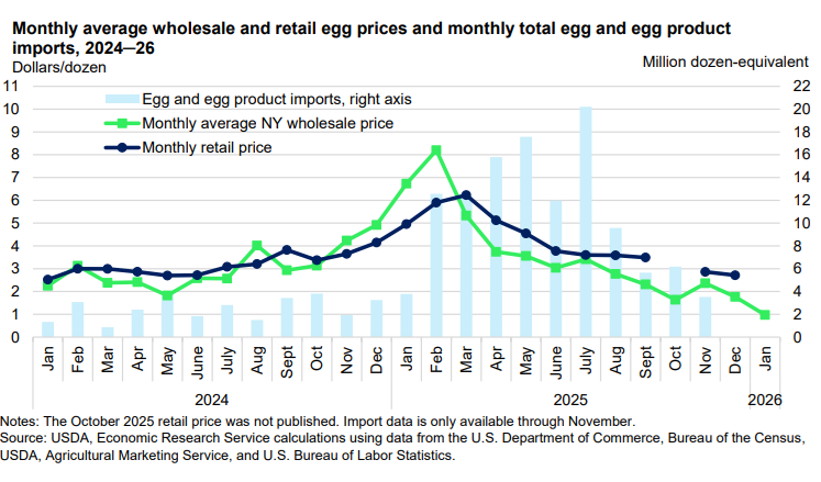 Le point important sera véritablement la consommation domestique cette année. Le consommateur américain peut-il encore se permettre des viandes chères dans les assiettes ? Selon les différentes versions des recherches du USDA, la production de poulet à griller pourrait augmenter de 1 à 3% en 2026. La production d’œuf aussi de près de 6% Les prix de ces denrées devraient subir très certainement une pression baissière.
