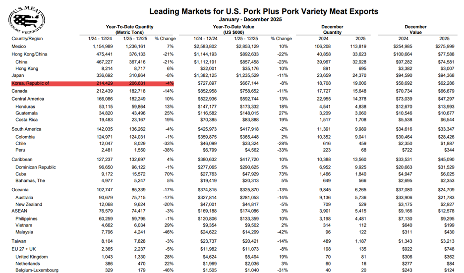 Et un dernier point, cette semaine une délégation commerciale de la Corée du Sud visitait des installations brésiliennes (usines de découpe et fermes). Le Brésil pourrait-il ravir une part de marché des importations coréennes au détriment des producteurs américains rapidement en 2026 ?