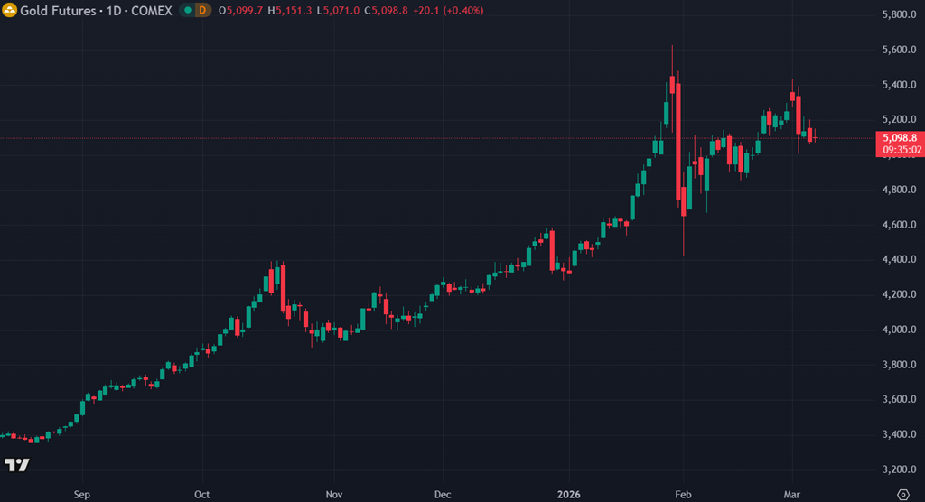 Du côté des métaux précieux, l’or demeure relativement stable autour de 5096 $, en légère hausse. L’intérêt pour les actifs défensifs reste présent, mais la réaction demeure ordonnée.