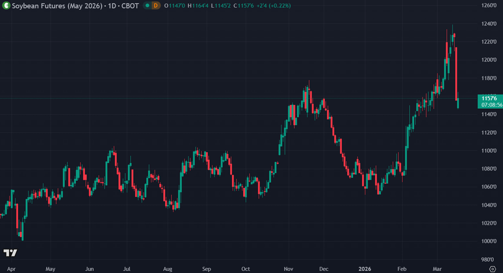 Dans les marchés agricoles, le ton est partagé. Le maïs remonte légèrement vers 4,56, le soja est aussi un peu plus ferme, tandis que le blé demeure globalement stable à légèrement plus faible. L’huile de soja mène les gains, soutenue par la vigueur du complexe énergétique. Dans l’ensemble, les grains semblent évoluer dans une phase de consolidation technique tout en restant influencés par l’énergie et le sentiment macro.