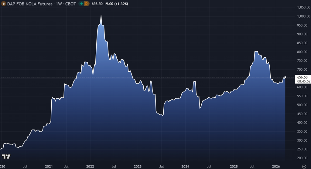 Mention aussi du côté des fertilisants. On observe un rebond notable de l’urée et plus largement des engrais azotés, principalement en réaction à la hausse du gaz naturel et aux tensions géopolitiques sur l’énergie. Comme la production d’azote est directement liée au coût du gaz, ce segment demeure beaucoup plus sensible aux chocs énergétiques à court terme.