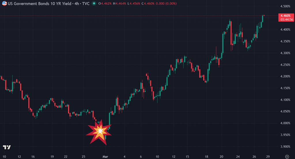 Au-delà des mouvements de court terme, un thème reprend de l’importance, celui des taux d’intérêt. Le 10 ans américain remonte vers 4,45–4,50 %, et c’est probablement là que se joue la vraie bataille des marchés. Comme l’an dernier avec la pause de 90 jours sur les tarifs avec la Chine, on a encore l’impression que l’échéance a été repoussée… mais pas réglée. La guerre ne s’est pas terminée comme anticipé au départ, et les marchés doivent maintenant intégrer un scénario plus long, plus coûteux.