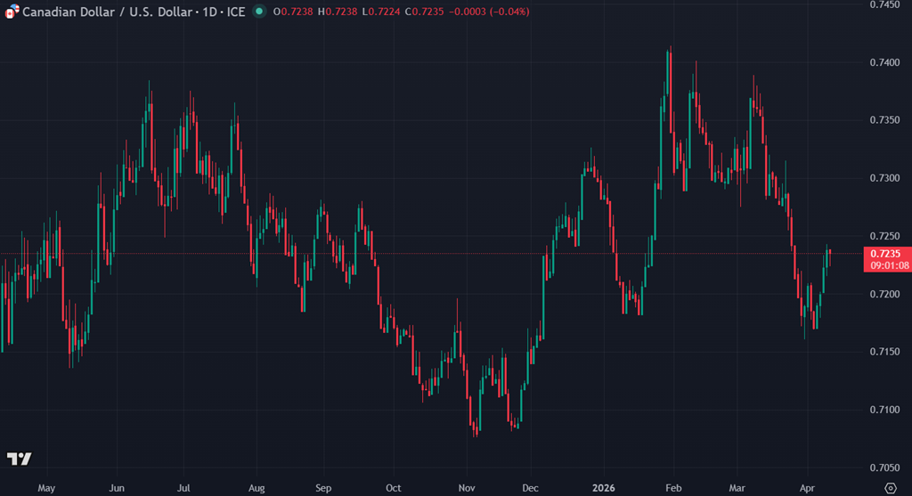 L’élément probablement le plus important pour la macro demeure la croissance des salaires, qui accélère à 5.1 % sur un an contre 4.2 % précédemment. Ça, pour la Banque du Canada, c’est le morceau plus « sticky » du rapport : le chômage ne monte plus, l’emploi total tient le coup, et les salaires repartent à la hausse. Donc même si la croissance économique manque d’oxygène, ce n’est pas exactement le type de rapport qui crie à l’urgence de couper agressivement les taux. En bref : emploi stable, qualité des gains un peu plus faible (plus de partiel), mais pression salariale encore bien vivante donc assez pour garder le dollar canadien coincé dans son range 72–74 cents.