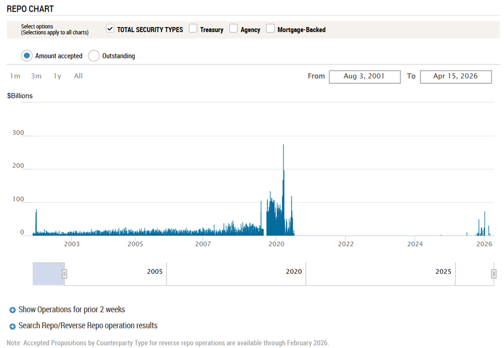 - Enfin, la liquidité aide à stabiliser le tout, sans qu’on puisse parler de QE déguisé. La légère remontée des opérations repo et de la standing repo facility suggère effectivement un peu plus de graisse dans les rouages monétaires, mais davantage pour gérer les frictions de financement, les besoins de collatéral et la plomberie du système que pour relancer volontairement les actions. La Fed n’alimente pas directement le rallye, elle s’assure surtout que rien ne casse dans le tuyau — et pour Wall Street, c’est souvent largement suffisant.