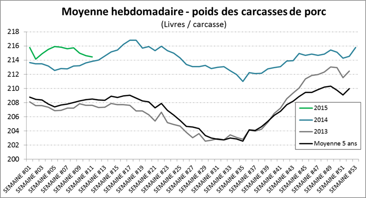 Graphique 1 – Poids des carcasses de porc