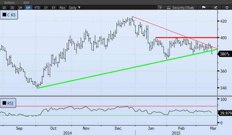 Maïs de mai (¢US/boisseau) = Neutre / négatif