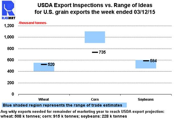 - Les exportations de maïs sont sous les estimés à 735 000 tonnes pour la semaine dernière