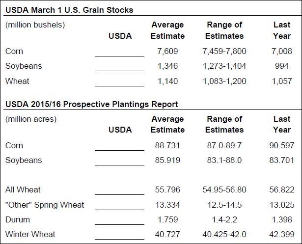 - Inventaires de grains au 1er mars seraient supérieur à l’an dernier selon les estimés