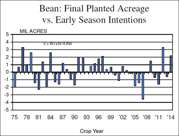 - Superficie de soya : 84.6M acres, soit 1.5% moindre qu’anticipée mais 1.1% de plus qu’en 2014