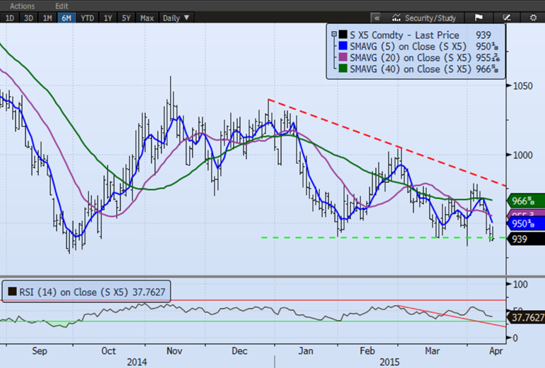 Soya de nov'15 (¢US/boisseau) = Neutre / potentiellement négatif