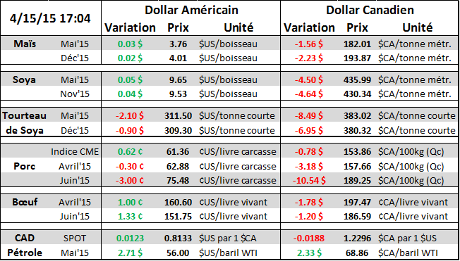 Finalement, l’ancien monopole d’État, la Commission Canadienne du Blé (Canadian Wheat Board), appartiendra désormais à Bunge et à une entreprise saoudienne d’investissement agro-alimentaire. Ils acquièrent 50.1% de la société d’État pour 250M de $CA. Pour plus d’information sur cette transaction : La presse .