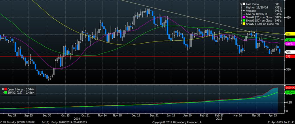 Graphique 4 – analyse technique sur le CAT de corn juillet 2015