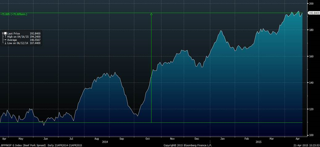 · Maintien de l’impressionnant écart de prix entre le bœuf et le porc.