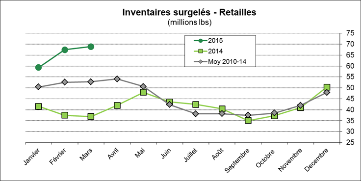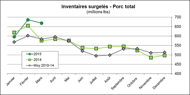 Source : USDA – Cold Storage Avril 2015 // Compilé par Gabriel Joubert-Séguin