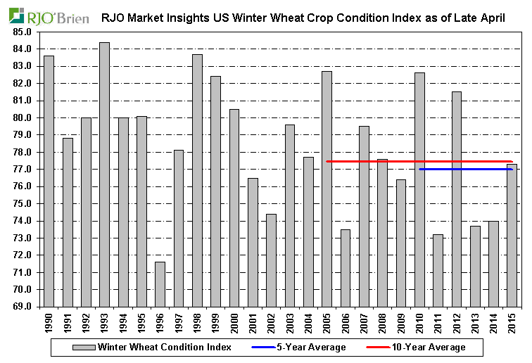 Blé d’hiver : la qualité du blé d’hiver est restée inchangée à 42% good/excellent tandis qu’on aurait souhaité une légère amélioration des cultures. Somme toutes à 42% nous demeurons dans les normes des 5 et 10 dernières années. Par contre l’émergence est bonne et un peu plus rapide que les années précédentes.