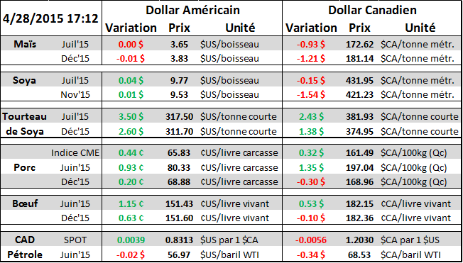 · Lean Hog : prime d’environ 15 cents entre le cash et le contrat de juin.