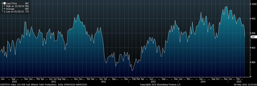 · Piètre performance au niveau de la production d’éthanol avec 887K barils/jours