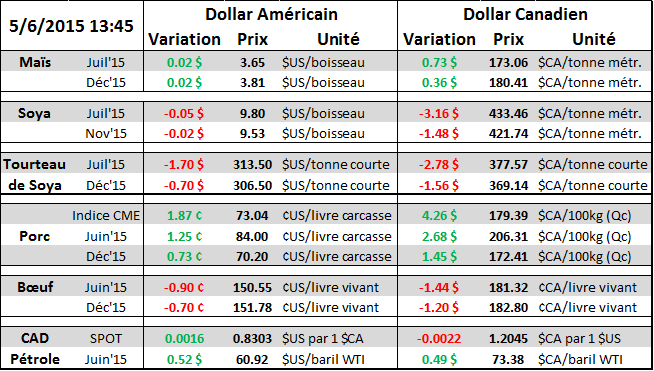 · La marge opérationnelle pour la production d’éthanol est de retour au-dessus de 0.30 $US/gallon