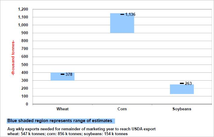 · Inspection à l’exportation: volume plus élevé que requis dans le maïs et le soya, mais le blé manque la cible