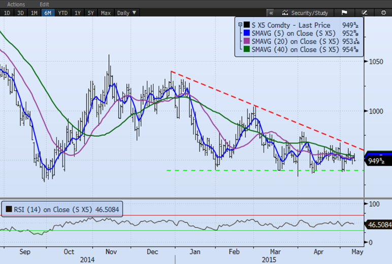 Soya de nov'15 (¢US/boisseau) = Neutre