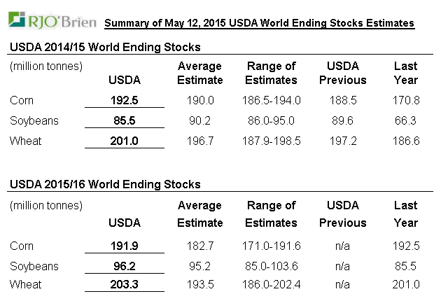NAP USDA NUMBERS FROM MAY 12 CROP PRODUCTION AND WASDE REPORTS