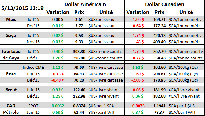 Coté élevage nous avons reçu de l’information pertinente hier lors du rapport USDA. Je vais vous présenter des graphique tiré du CME Daily Livestock qui relate très bien la dynamique actuelle entre la viande de bœuf et de porc. La consommation de bœuf per capita illustre une baisse stable depuis 2006 au même moment où l’offre de viande porcine a continuellement augmenté! Et la même tendance est prévue pour 2016. L’USDA a revu à la hausse la production de bœuf pour 2015 de 58 million de livres et se situe donc à 24.339 milliard (très légèrement au-dessus de la production 2014). L’augmentation du poids des bêtes de 3% aura suffi pour compenser les faibles abattage de l’année. On prévoit une forte augmentation des importations de bœuf à 3.116 milliard de livre, c’est 206 million de plus que le dernier forecast et 5.7% de plus que l’an passé! La force du dollar américain a donc été très importante pour les importation vu que le bœuf canadien, par exemple, était bon marché. Dans le cas de l’élevage porcin, la production 2015 est maintenant prévu à 24.414 milliard, c’est une augmentation de 161 million de livre par rapport au derniers estimés et représente aussi une augmentation de 1.55 milliard de livre (+6.8%) vis-à-vis l’an dernier. La dernière fois que nous avons connu une aussi grande variation dans la production porcine était en 1998 quand l’offre a bondi de 1.7 milliard (+10%). En terme nominal, la production de 24.414 milliard de livres représente de loin la plus large production américaine de porc et ce sera donc la première fois dans l’histoire américaine que la production porcine est plus élevée que la production bovine!!!!