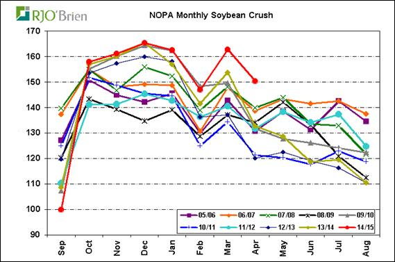 · En avril, la quantité de soya triturées était de 150.4M de boisseaux, un record pour ce mois