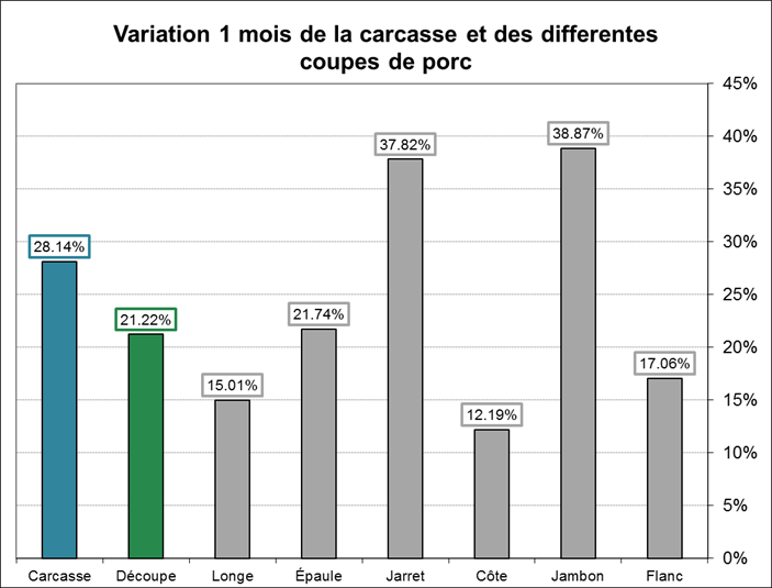 Graphique 3 – Variation du dernier mois des composantes de la carcasse de porc