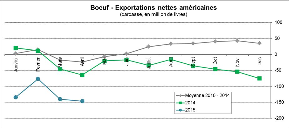· En avril, les importations nettes de bœuf continuent d’augmenter, pour atteindre 146M livres, un record depuis 2007