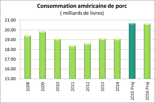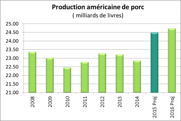 Graphique 2 – Production américaine de porc (en milliards de lbs)