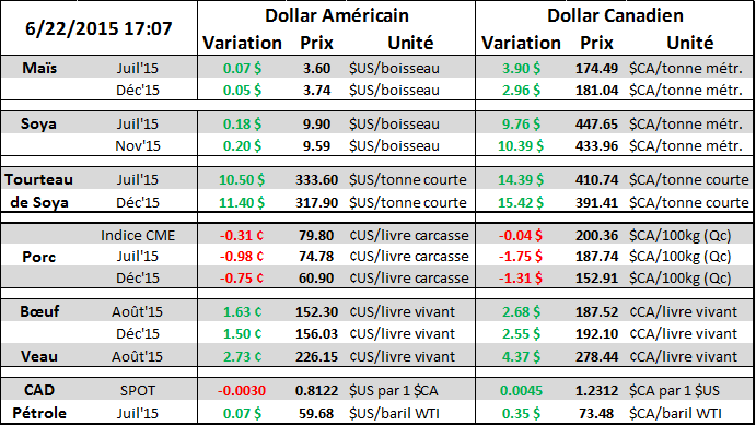 · Le prix du canola et du tourteau de soya sont en forte hausse depuis 2 semaines en raison des dommages causés par la météo