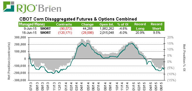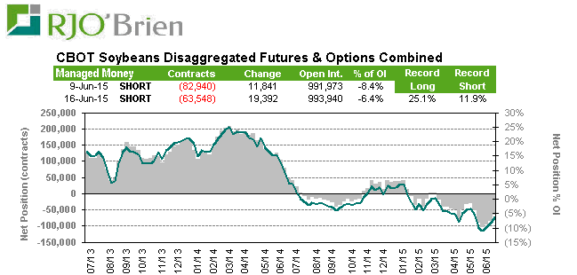 · Mise-à-jour des positions des spéculateurs en date du 16 juin : ils vendent du maïs et du blé, mais achètent du soja.