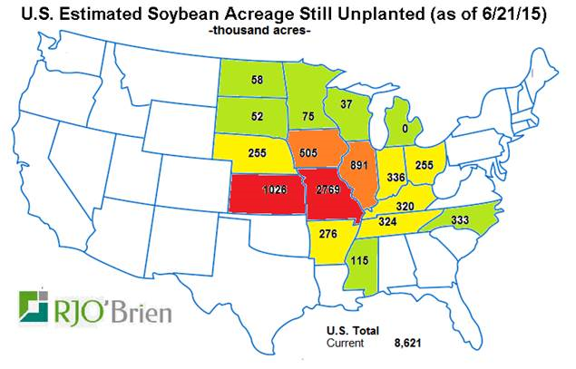 · Il resterait environ 8.621 million d’acres de soja à semer selon l’USDA
