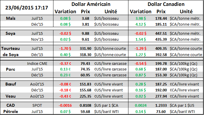 Nous aurons plus de détails lors du rapport le 30 juin mais de plus en plus les rumeurs circulent comme quoi les surfaces seraient moins importante que prévu. J’abonde aussi en ce sens pour deux raisons ; premièrement la météo a tellement été belle en avril et au début mai que les producteurs ont pu pousser les semis de maïs et deuxièmement la météo qui s’est installée après va possiblement nuire tant aux surfaces qu’au rendement espéré. En fait le but n’est pas du tout de spéculer sur la direction des prix, mais bien de comprendre d’où le risque vient! En ce moment on parle donc de peut-être moins de surface avec un potentiel de rendement plus faible. N’oubliez pas qu’au niveau mondial les stocks de soja sont à des niveaux records, donc rien pour exciter les spéculateur haussier, mais plus pour revoir si ça vaut encore la peine de shorter le marché à coup de centaine de millers de contrats!