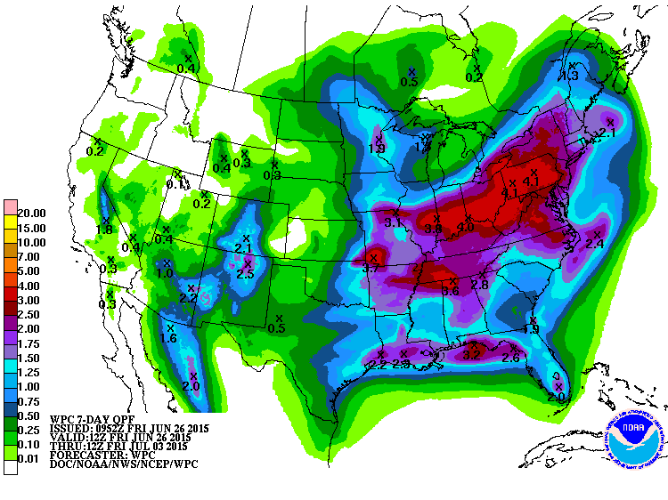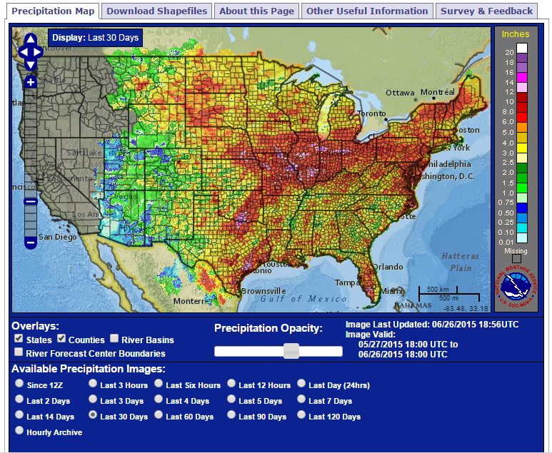 Et c’est carrément l’inverse dans aux States! Du 27 mai au 26 juin la plupart des états du cornbelt ont reçu 8 à 12 pouces d’eau!