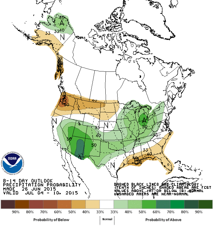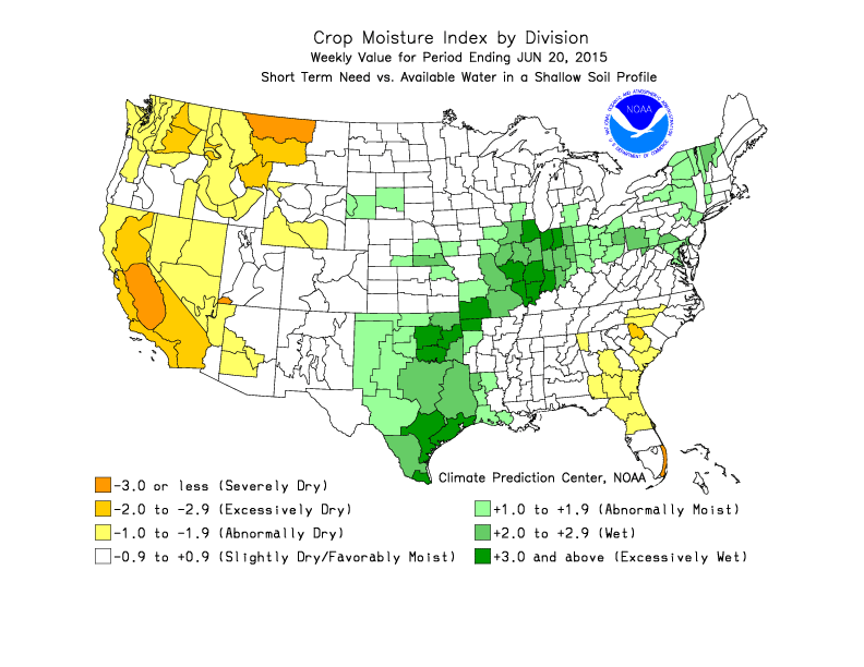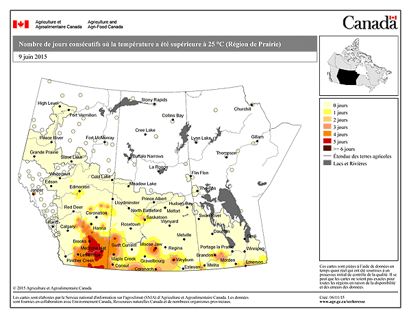 Au Canada dans l’ouest (blé & canola) c’est chaud et sec plusieurs régions des prairies ont reçu moins de 40% des précipitations moyennes du 1er avril au 25 juin 2015.