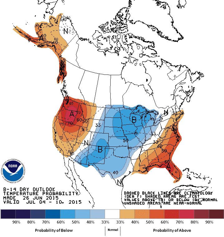 Même les forecast éloignés montrent des probabilités de temps frais et pluvieux.