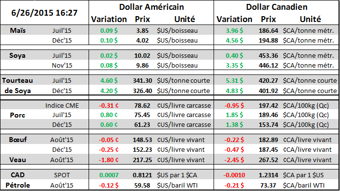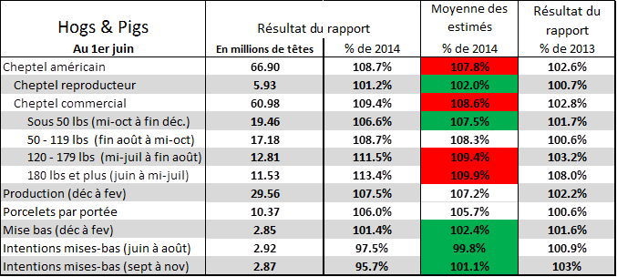 Tableau 1 – Sommaire du rapport Hogs & Pigs (rouge = négatif / vert = positif pour les prix)
