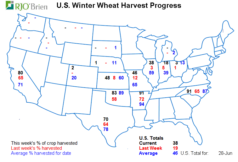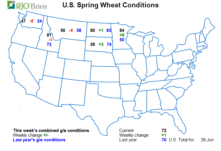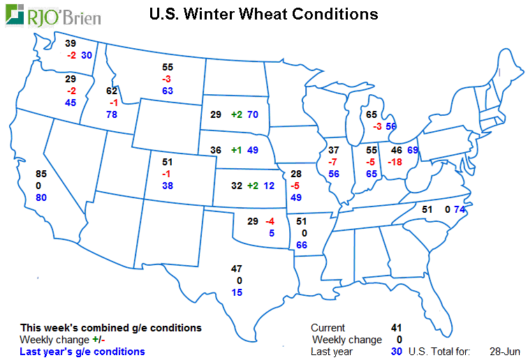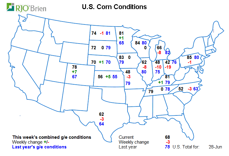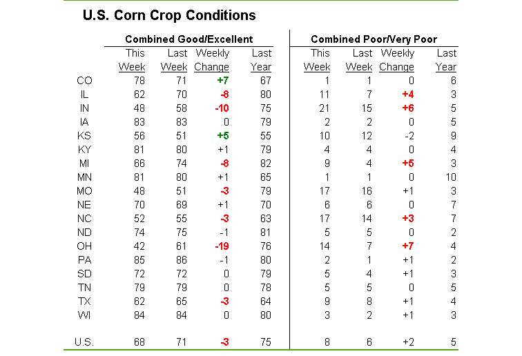 Les effets de la flotte se font ressentir sur les conditions du blé d’Inde. Les États de l’est du Belt sont les plus touché avec de grande baisse de qualité.