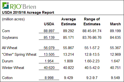 · Au Québec : 778K acres de soya (inchangé depuis mars) et 902K acres de maïs (-5.3% versus les intentions de mars)