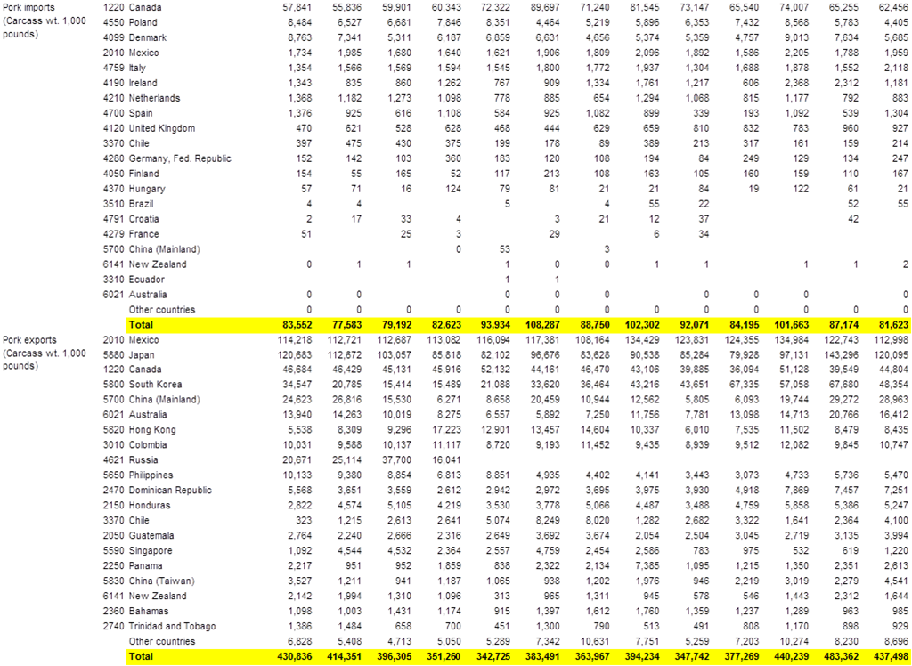 · Exportation nette de porc à 356 million de livres en mai