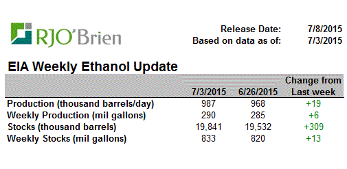 Tableau sur la production et stock d’éthanol (données de l’EIA comptabilisé par RJO)