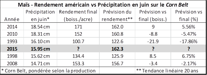 Tableau 4 – Analyse du rendement du maïs selon les précipitations en juin