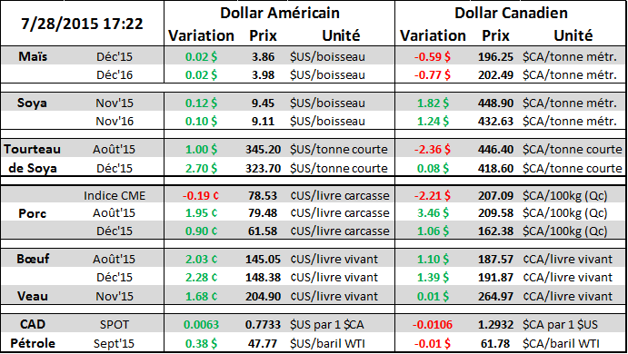 · Le prix du contrat de porc d’août explose à 79.50 (+2¢/lb)