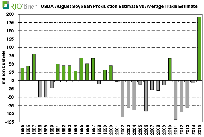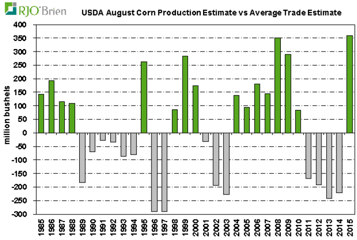 Avec une production plus forte que prévu par 192 millions de boisseaux, le rapport USDA d’aujourd’hui représente de très loin le plus surprenant depuis 1985!