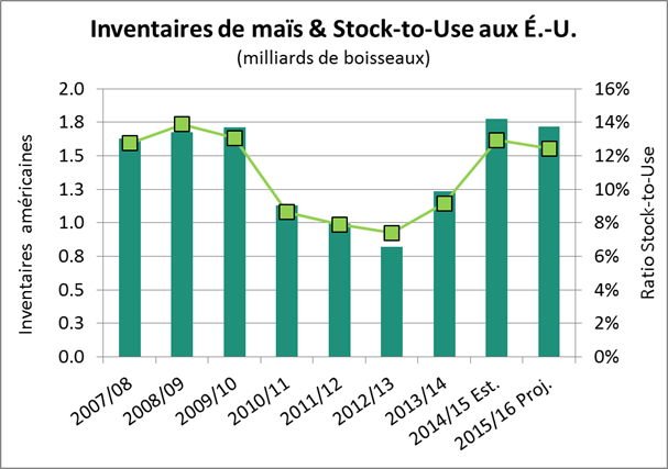 En terme de ratio d’utilisation (stock-to-use ; la division de stock de fin par la demande totale) nous avons tout de même une situation qui se compare à l’an dernier, même un peu plus serré.