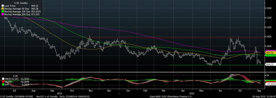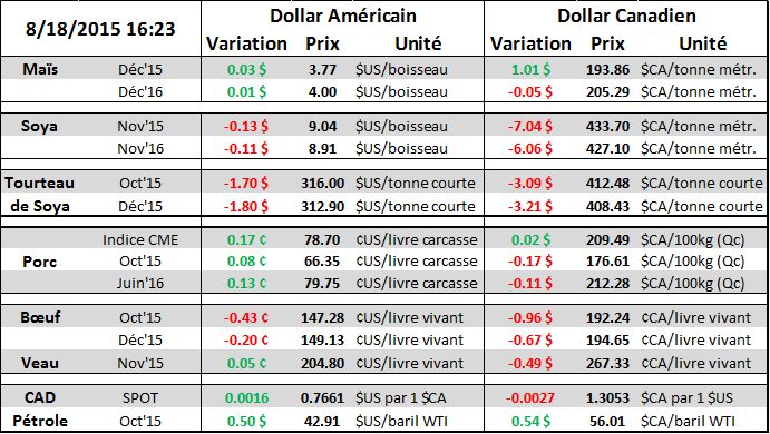 · Le prix du soya est de retour à son support de 9.00 $/boisseau