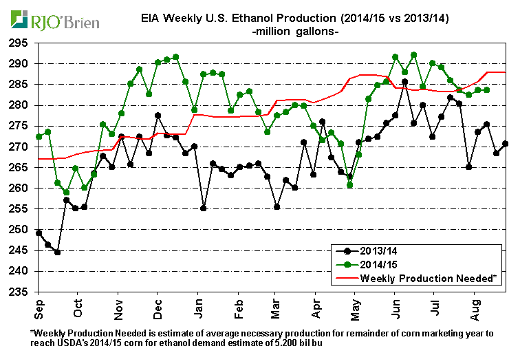 · Production d’éthanol stable, en ligne avec l’utilisation prévue par USDA
